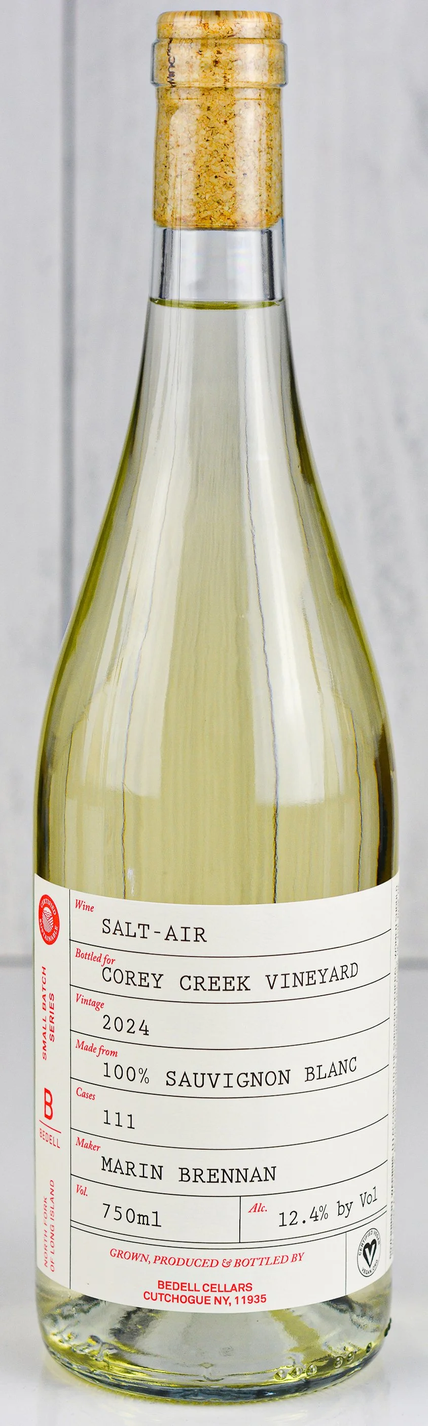Salt-Air is made from 100% Sauvignon Blanc that was hand-harvested and gently crushed before pressing. After pressing, the juice was fermented and aged in barrels for two and a half months. For the 2024 vintage, Winemaker Marin Brennan selected combination of 50% new and 50% neutral oak to shape the wine’s character. Blending these wines after fermentation created a beautifully balanced Sauvignon Blanc with depth and complexity. An exceptional expression of North Fork terroir.